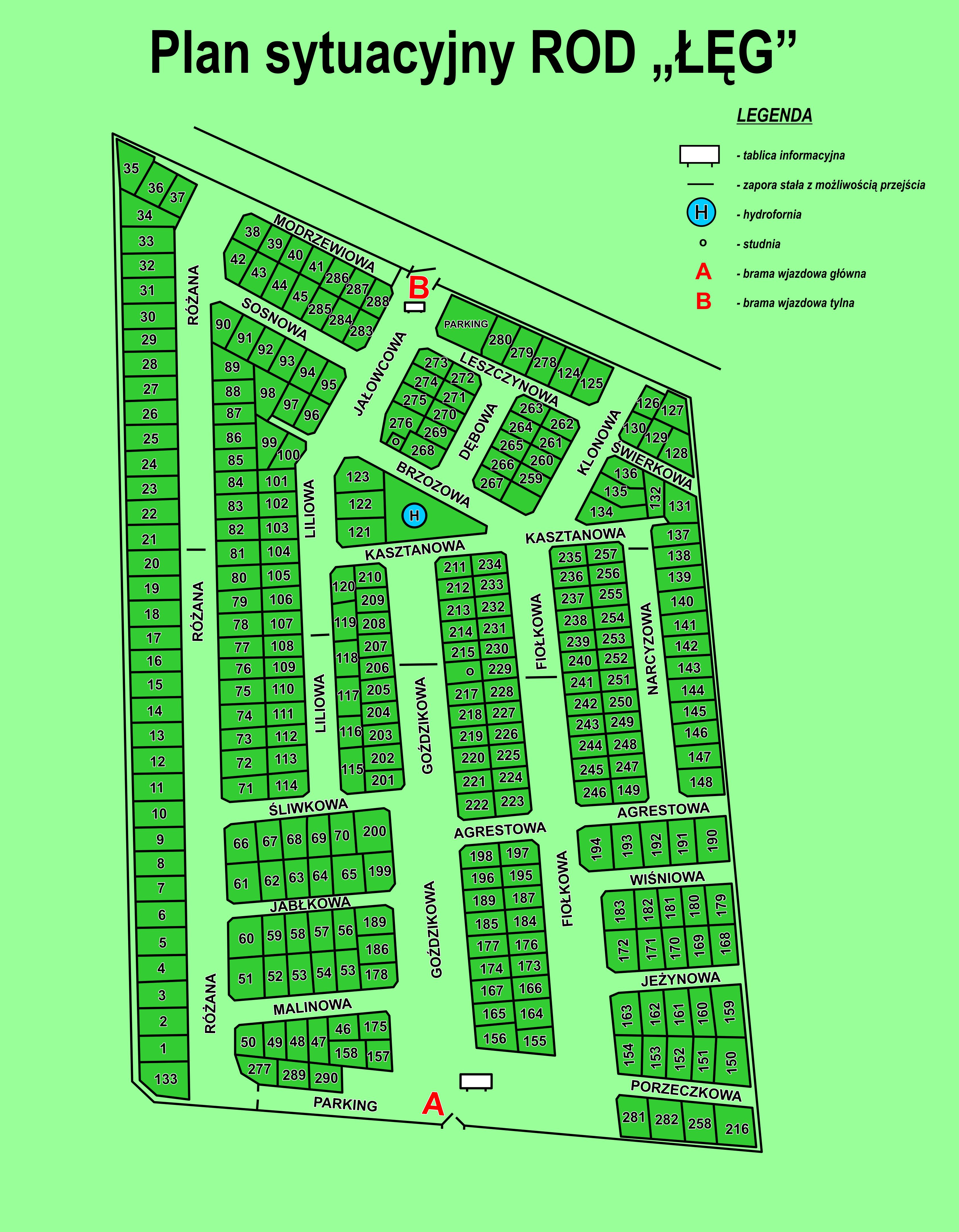 Plan sytuacyjny ROD „Łęg”